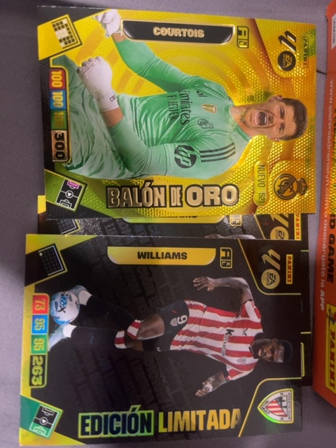 Pack de 70 cromos repetidos de la colección ADRENALYN XL 25-26: ATHLETIC CLUB - #19B - STADIUM CARD - SAN MAMÉS - (2 repetidos) FC BARCELONA - #55B - STADIUM CARD - SPOTIFY NOU CAMP - (2 repetidos) REAL BETIS - #73 - ESCUDO - (4 repetidos) REAL BETIS - #73B - STADIUM CARD - LA CARTUJA - (2 repetidos) GETAFE CF - #145B - STADIUM CARD - COLISEUM - (2 repetidos) REAL MADRID - #199B - STADIUM CARD - SANTIAGO BERNABÉU - (3 repetidos) RCD MALLORCA - #217 - ESCUDO - (2 repetidos) REAL OVIEDO - #253B - STADIUM CARD - CARLOS TARTIERE - (4 repetidos) ¡VAMOS! - #363 - ATLÉTICO DE MADRID - (2 repetidos) ¡VAMOS! - #365 - REAL BETIS - (2 repetidos) ¡VAMOS! - #366 - RC CELTA - (2 repetidos) ¡VAMOS! - #371 - LEVANTE UD - (2 repetidos) ¡VAMOS! - #372 - REAL MADRID - (2 repetidos) ¡VAMOS! - #374 - CA OSASUNA - (2 repetidos) ¡VAMOS! - #375 - REAL OVIEDO - (2 repetidos) ¡VAMOS! - #376 - RAYO VALLECANO - (2 repetidos) ¡VAMOS! - #380 - VILLARREAL CF - (2 repetidos) GUANTES DE ORO - #381 - SIVERA - (3 repetidos) GUANTES DE ORO - #382 - JOAN GARCÍA (FC BARCELONA) - (3 repetidos) GUANTES DE ORO - #385 - BATALLA (RAYO VALLECANO) - (2 repetidos) GUANTES DE ORO - #386 - REMIRO (REAL SOCIEDAD) - (4 repetidos) GUANTES DE ORO - #387 - AGIRREZABALA (VALENCIA CF) - (2 repetidos) KRYPTONITA - #388 - LAPORTE - (3 repetidos) KRYPTONITA - #390 - LE NORMAND (ATLÉTICO DE MADRID) - (2 repetidos) KRYPTONITA - #391 - AFFENGRUBER (ELCHE CF) - (3 repetidos) KRYPTONITA - #392 - CABRERA (RCD ESPANYOL) - (2 repetidos) KRYPTONITA - #394 - LEJEUNE (RAYO VALLECANO) - (3 repetidos) DIAMANTES - #397 - REGO (ATHLETIC CLUB) - (3 repetidos) DIAMANTES - #399 - VALENTÍN GÓMEZ (REAL BETIS) - (2 repetidos) DIAMANTES - #401 - RODRI MENDOZA (ELCHE CF) - (2 repetidos) DIAMANTES - #404 - LISO (GETAFE CF) - (2 repetidos) DIAMANTES - #408 - ETTA EYONG (LEVANTE UD) - (2 repetidos) DIAMANTES - #410 - GONZALO (REAL MADRID) - (3 repetidos) DIAMANTES - #411 - JAN VIRGILI (RCD MALLORCA) - (2 repetidos) DIAMANTES - #412 - MATEO JOSEPH (RCD MALLORCA) - (2 repetidos) INFLUENCERS - #415B - RUIZ DE GALARRETA (ATHLETIC CLUB) - (3 repetidos) INFLUENCERS - #416 - SOTELO (RC CELTA) - (3 repetidos) INFLUENCERS - #416B - PABLO FORNALS (REAL BETIS) - (3 repetidos) INFLUENCERS - #417 - FEBAS (ELCHE CF) - (2 repetidos) INFLUENCERS - #418 - EDU EXPÓSITO (RCD ESPANYOL) - (3 repetidos) INFLUENCERS - #419 - MILLA (GETAFE CF) - (3 repetidos) INFLUENCERS - #421 - AIMAR OROZ (CA OSASUNA) - (2 repetidos) PROTAS - #424 - TENAGLIA (D. ALAVÉS) - (2 repetidos) PROTAS - #425 - CARLOS VICENTE (D. ALAVÉS) - (2 repetidos) PROTAS - #428 - BORJA IGLESIAS (RC CELTA) - (3 repetidos) PROTAS - #429 - DOLAN (RCD ESPANYOL) - (3 repetidos) PROTAS - #431 - MANU SÁNCHEZ (LEVANTE UD) - (2 repetidos) PROTAS - #435 - HASSAN (REAL OVIEDO) - (2 repetidos) PROTAS - #438 - BATISTA MENDY (SEVILLA FC) - (3 repetidos) PROTAS - #440 - DANJUMA (VALENCIA CF) - (5 repetidos) PROTAS - #441 - BUCHANAN (VILLARREAL CF) - (2 repetidos) SUPER CRACKS - #443 - JAUREGIZAR (ATHLETIC CLUB) - (2 repetidos) SUPER CRACKS - #444 - OBLAK (ATLÉTICO DE MADRID) - (2 repetidos) SUPER CRACKS - #447 - ALMADA (ATLÉTICO DE MADRID) - (2 repetidos) SUPER CRACKS - #448 - GRIEZMANN (ATLÉTICO DE MADRID) - (2 repetidos) SUPER CRACKS - #452 - LEWANDOWSKI (FC BARCELONA) - (2 repetidos) SUPER CRACKS - #454 - ISCO (REAL BETIS) - (2 repetidos) SUPER CRACKS - #455 - LO CELSO (REAL BETIS) - (3 repetidos) SUPER CRACKS - #456 - ANTONY (REAL BETIS) - (2 repetidos) SUPER CRACKS - #457 - COURTOIS (REAL MADRID) - (2 repetidos) SUPER CRACKS - #458 - CARRERAS (REAL MADRID) - (2 repetidos) SUPER CRACKS - #463 - KUBO (REAL SOCIEDAD) - (2 repetidos) SUPER CRACKS - #464 - VARGAS (SEVILLA FC) - (3 repetidos) SUPER CRACKS - #467 - PÉPÉ (VILLARREAL CF) - (3 repetidos) EDICIÓN LIMITADA - #608 - WILLIAMS (ATHLETIC CLUB) - (3 repetidos) NEW MASTER 11 - #4 - NM/4 - CALETA-CAR (REAL SOCIEDAD) - (2 repetidos) NEW MASTER 11 - #5 - NM/5 - HANCKO (ATLÉTICO DE MADRID) - (2 repetidos) NEW MASTER 11 - #6 - NM/6 - SUAZO (SEVILLA FC) - (2 repetidos) NEW MASTER 11 - #8 - NM/8 - SANTAMARÍA (VALENCIA CF) - (2 repetidos) NEW MASTER 11 - #12 - NM/12 - DOLAN (RCD ESPANYOL) - (2 repetidos)